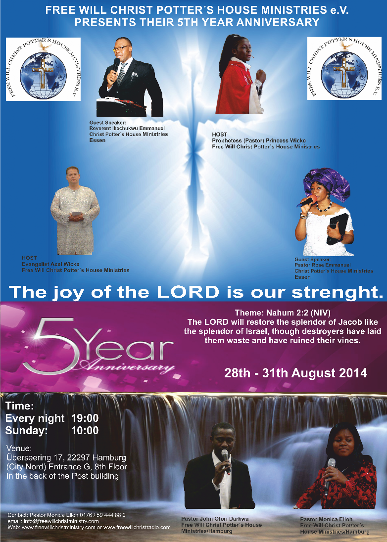 5th year Anniversary 2014 - Free Will Christ Potter“s House Ministries e.V.