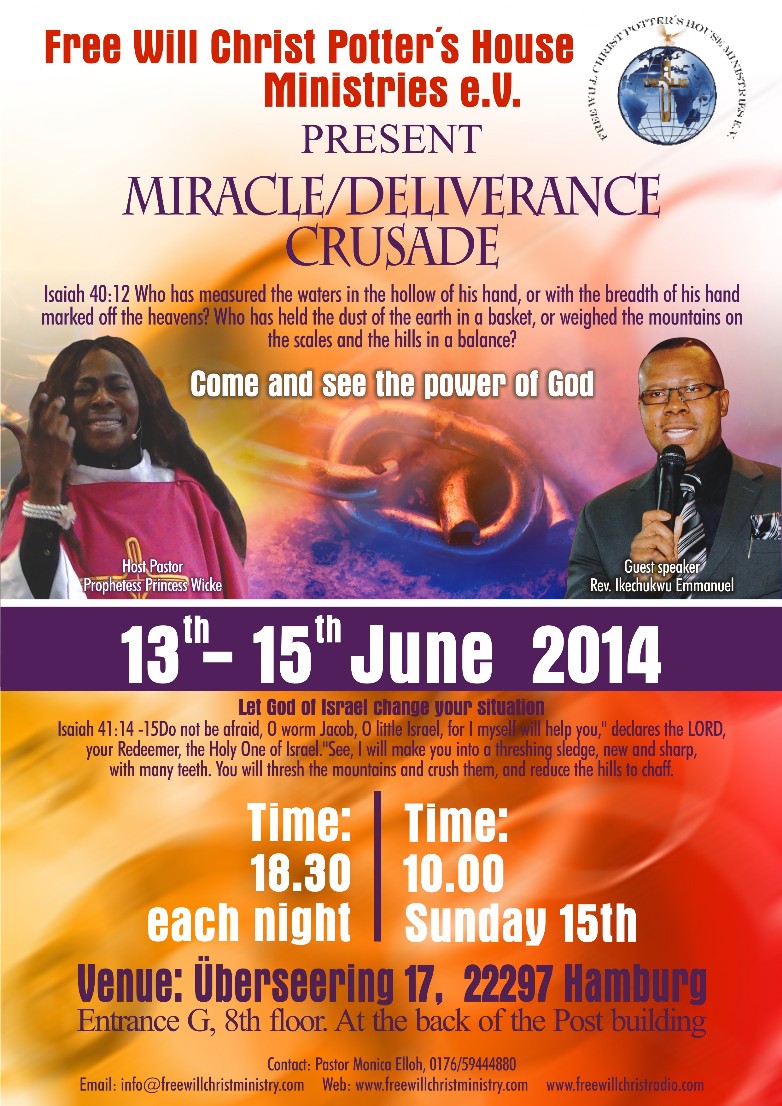 Miracle / Deliverance Crusade 2014 - Free Will Christ Potter“s House Ministries e.V.